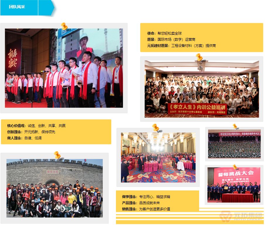 湖南元拓建材集團股份有限公司(簡稱:元拓建材集團)始創(chuàng)于1998年,以工程最前端的腳手架、鋁合金模板等產(chǎn)品為基礎(chǔ),現(xiàn)已發(fā)展成為集房產(chǎn)、工程、材料全產(chǎn)業(yè)鏈服務(wù)及多元化發(fā)展的大型實業(yè)集團。元拓模架產(chǎn)業(yè)鏈板塊(簡稱元拓模架)隸屬于湖南元拓建材集團,提供模架產(chǎn)業(yè)鏈解決方案––全系模架產(chǎn)品(含國際)、模架租賃及托管、勞務(wù)施工、數(shù)字模架、營銷訂單解決方案、應(yīng)收解決方案。 元拓模架深耕全球市場24年,目前擁有天津和順昌、湖北元拓鋁模兩大模架生產(chǎn)基地,長沙、青島、廣州三大子公司,埃及、印尼、迪拜、菲律賓等10多家海外子公司/辦事處。是中國石油、中國石化等世界知名石化施工企業(yè)指定供應(yīng)商和世界各國優(yōu)秀工程施工企業(yè)長期戰(zhàn)略合作伙伴,銷售網(wǎng)絡(luò)遍布多個國家和地區(qū)。
