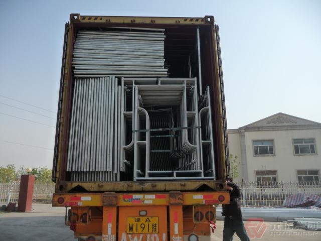(1)多功能:門(mén)式腳手架可組成不同組架尺寸、形狀和承載能力的單、雙排腳手架,能根據(jù)具體施工要求,作為支撐架,支撐柱,物料提升架,爬升腳手架,懸挑架等多種功能的施工裝備。也可用于搭設(shè)施工棚、料棚、燈塔等構(gòu)筑物。特別適合于搭設(shè)曲面腳手架和重載支撐架。