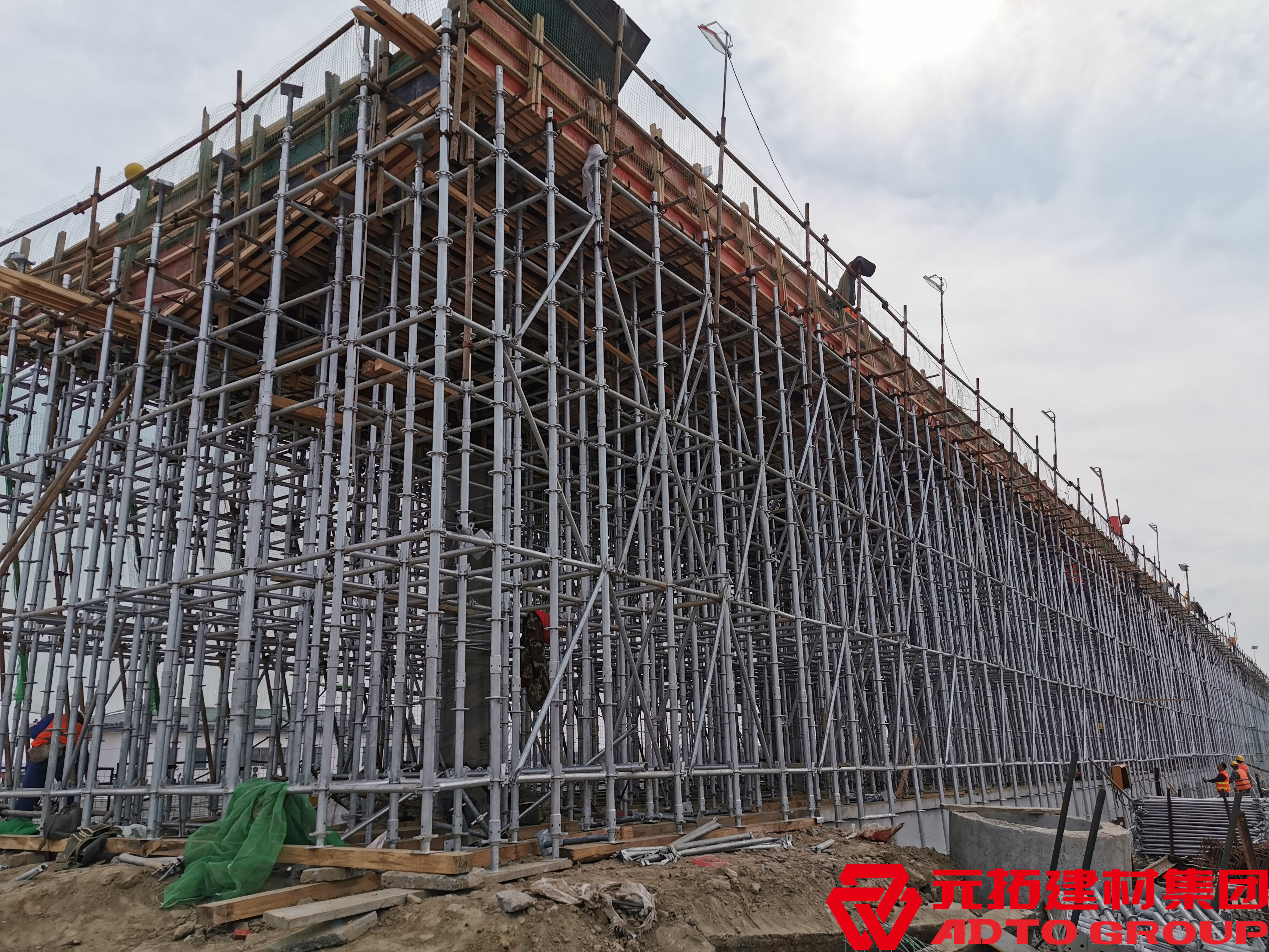 盤扣式腳手架正式名稱為新型承插式盤扣式腳手架桿。它的強度幾乎是普通碳鋼腳手架的兩倍,另外,盤扣式腳手架連接允許使用銷釘進行連接,可以使連接更加牢固。