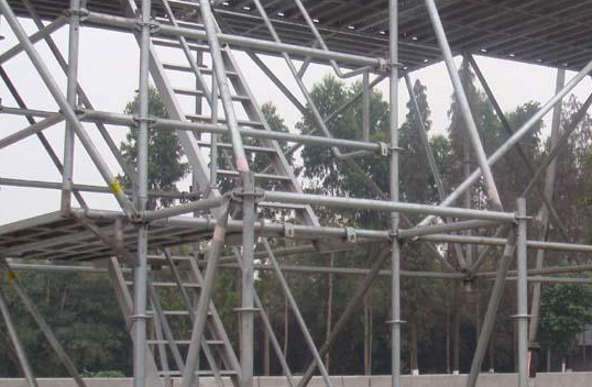 承插型盤扣式腳手架主要構(gòu)件由:由立桿、水平桿、斜桿、可調(diào)底座及可調(diào)托座等構(gòu)配件構(gòu)成。立桿采用套管或連接棒承插連接
