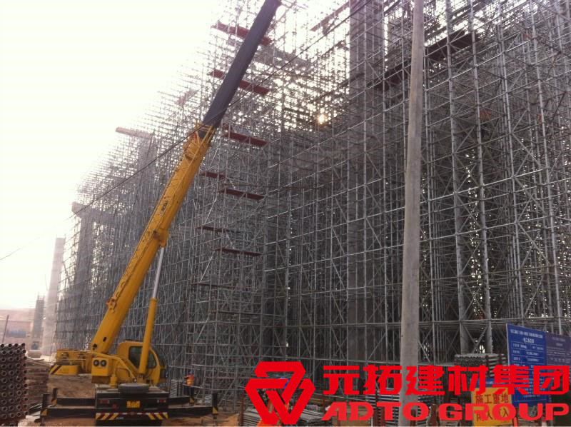 盤扣式腳手架主要構(gòu)件為立桿和橫桿,腳手架扣件連接點(diǎn)選用自鎖件聯(lián)接,具備靠譜的自鎖功能,構(gòu)造合理,立桿徑向傳力,使腳手架總體在三維空間確保它的總體可靠性,能較強(qiáng)的達(dá)到安全施工的要求。