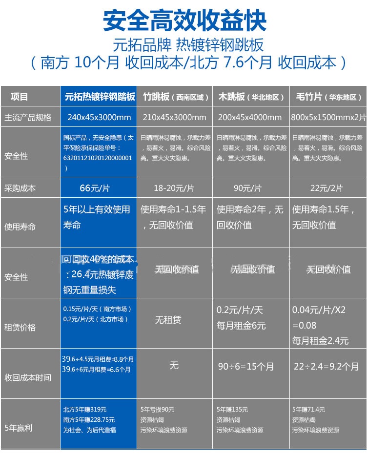 2、元拓鋼踏板用于租賃,約7-9個(gè)月即可收回成本,在有效使用壽命期內(nèi)的其他出租組建為純收益。